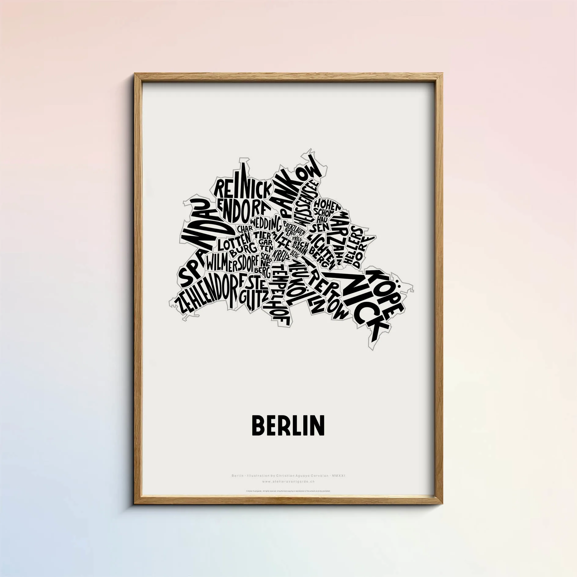 Typographic Illustration of Berlin. Hand-drawn and printed on high-quality paper