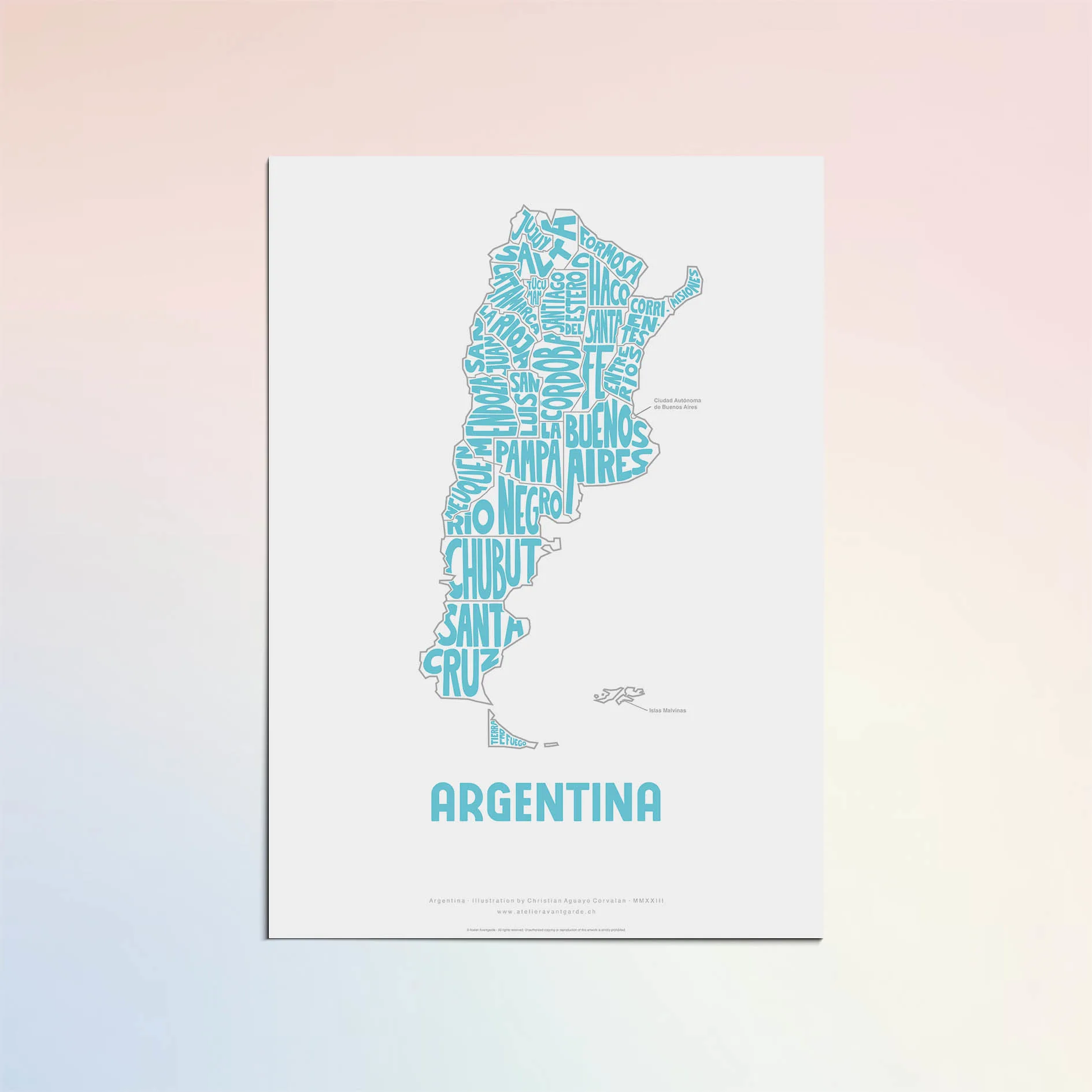 Argentina Typographic Poster M size unframed – Modern Graphic Design