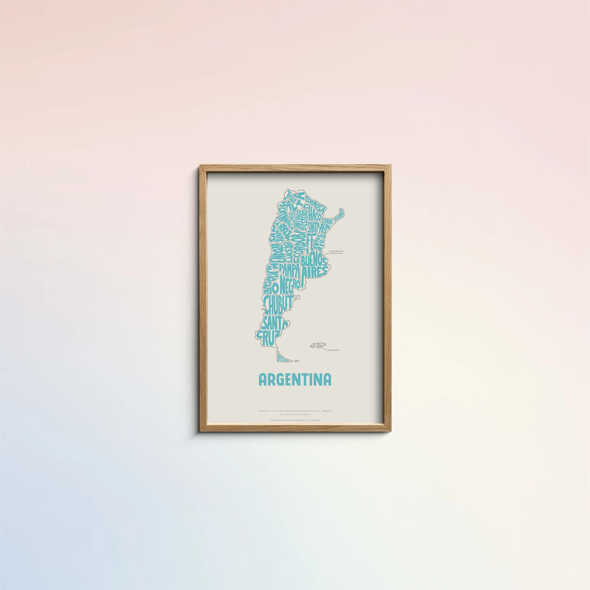 Argentina Typographic Poster M size framed – Modern Graphic Design