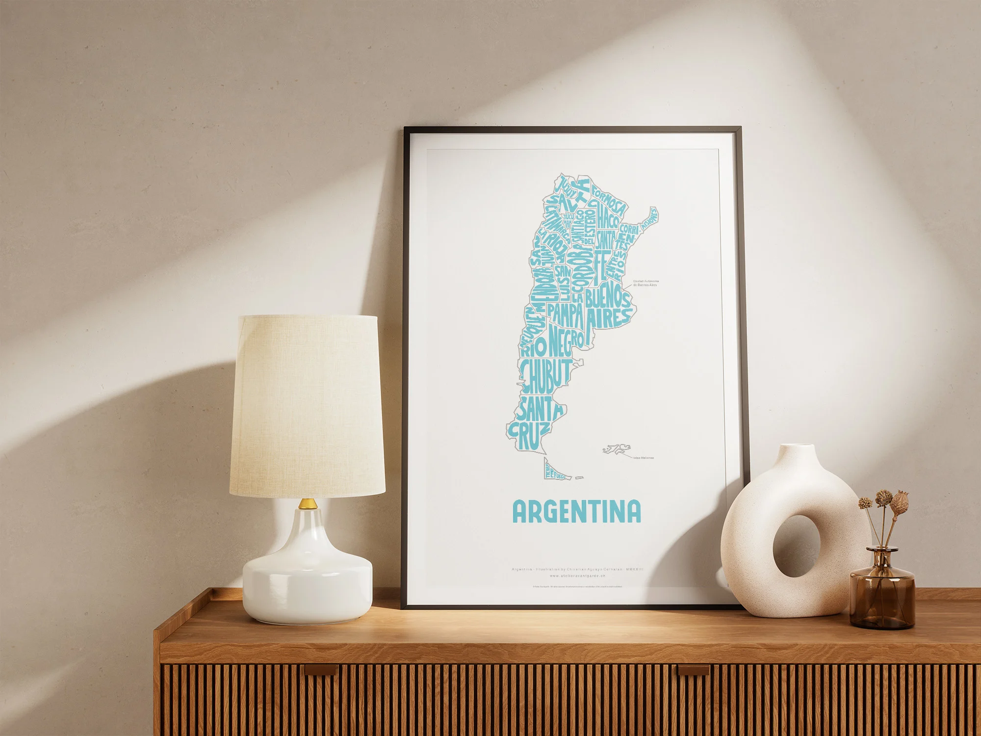 Argentina Typographic Poster L size framed – Modern Graphic Design