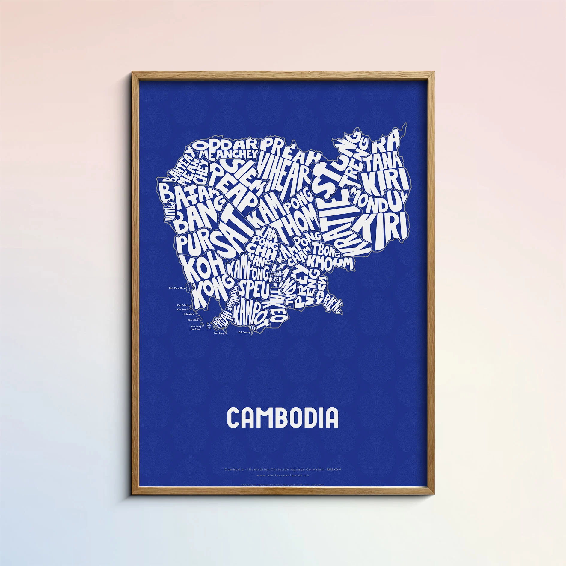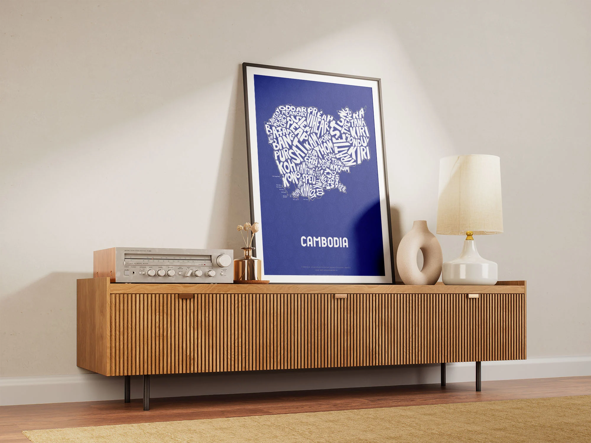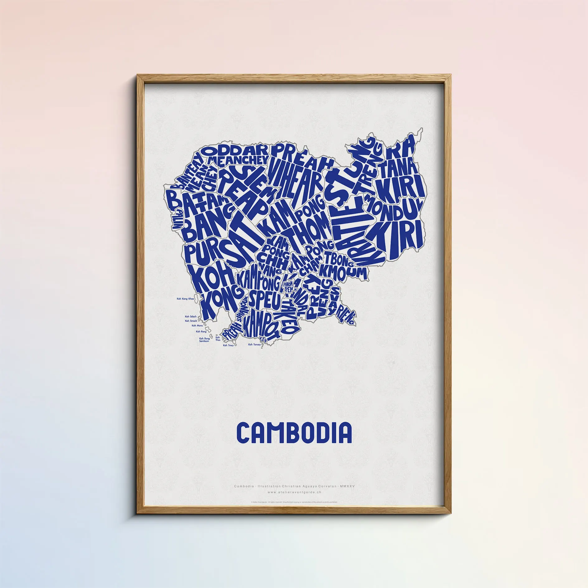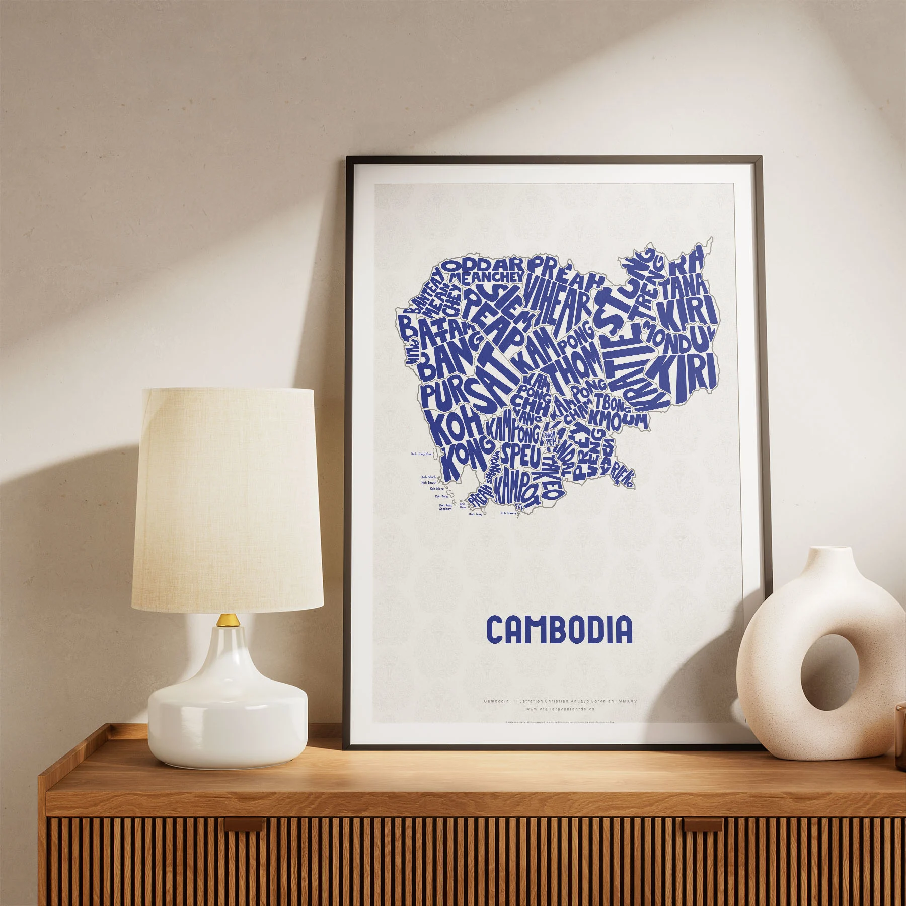 Cambodia Typographic Poster L size framed – Modern Graphic Design