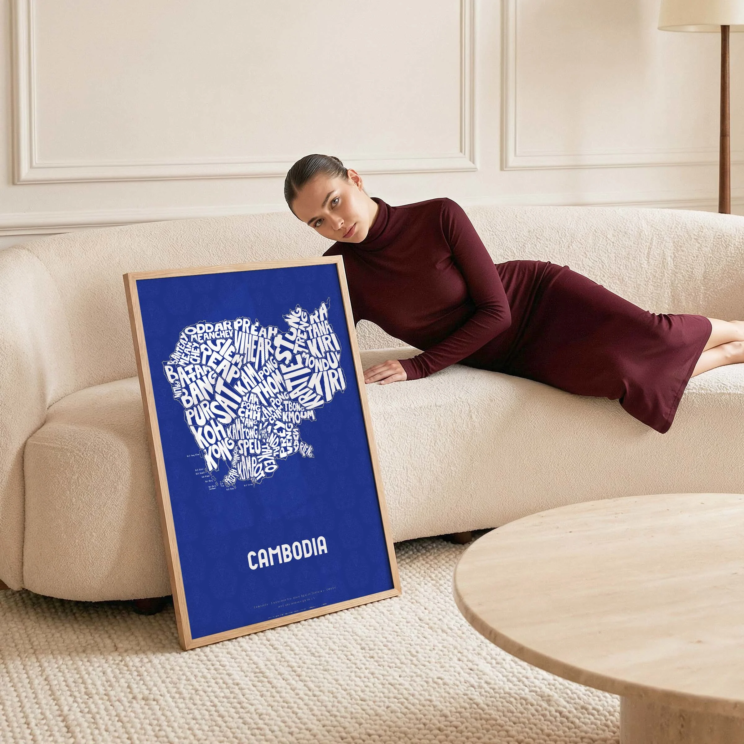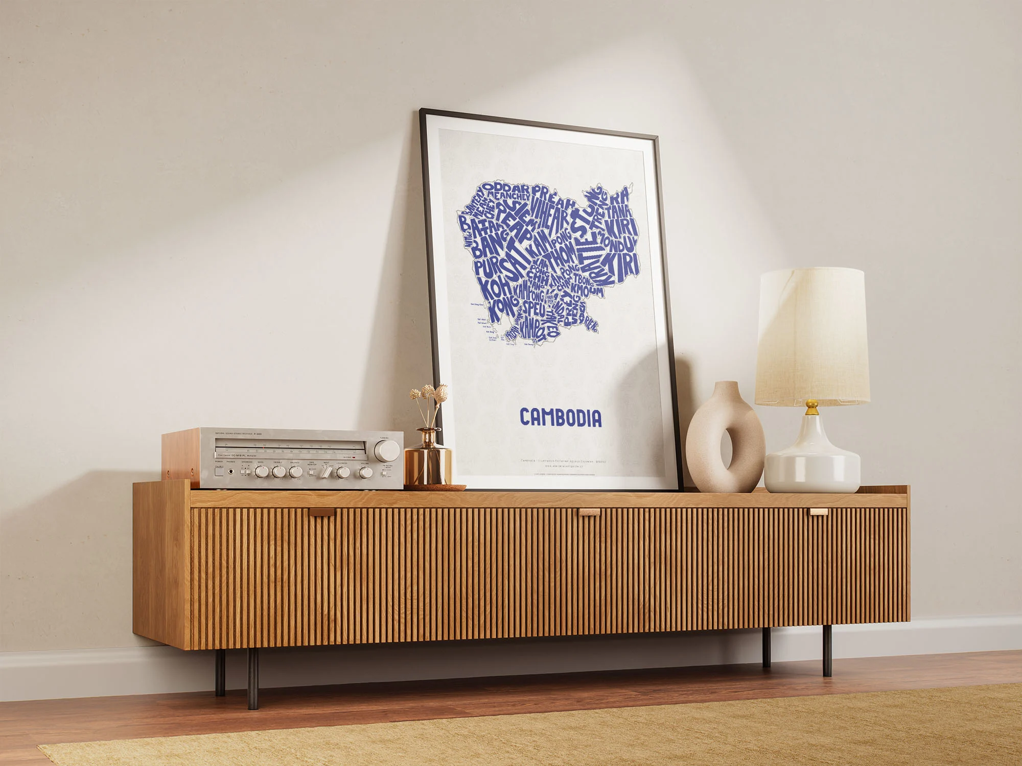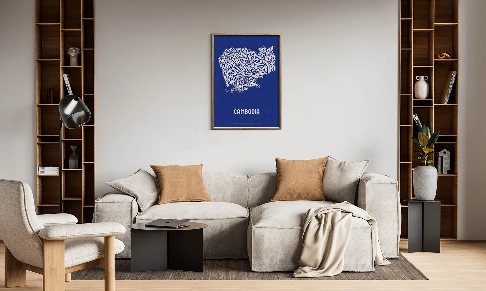 Cambodia Typographic Poster L size framed – Modern Graphic Design