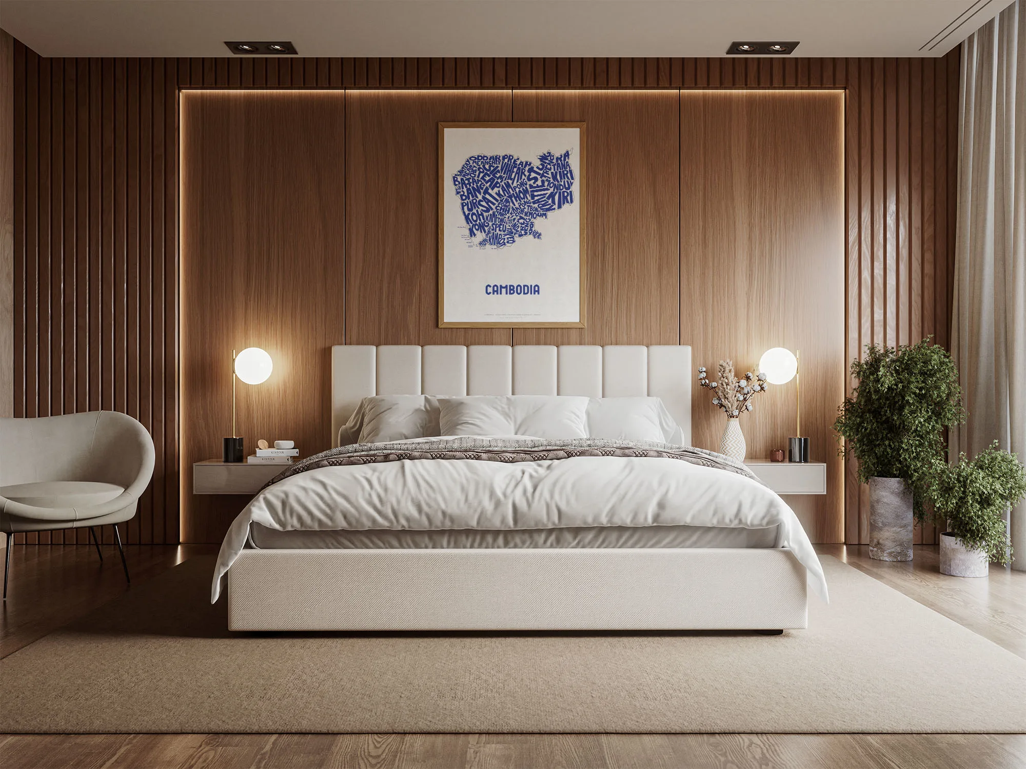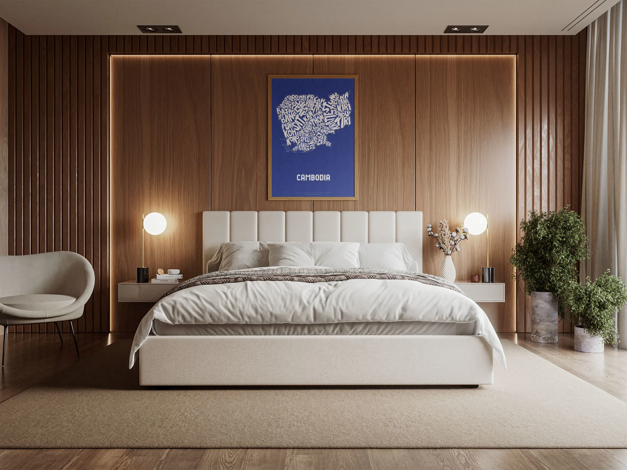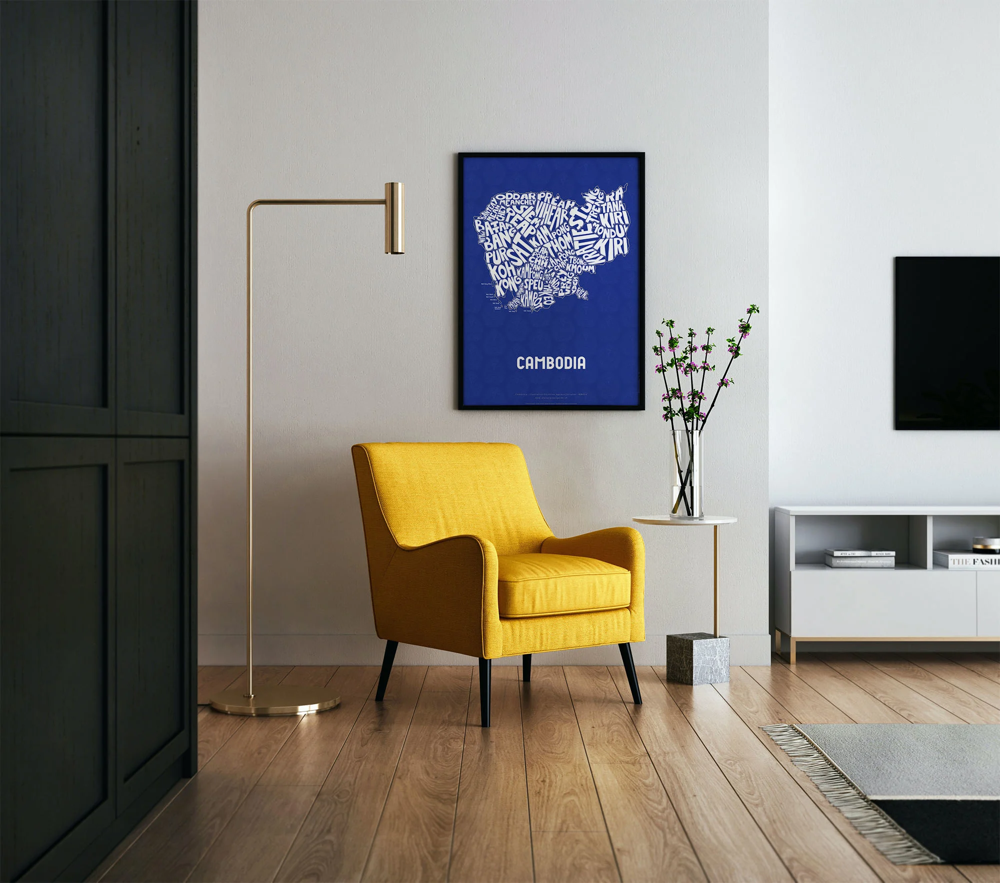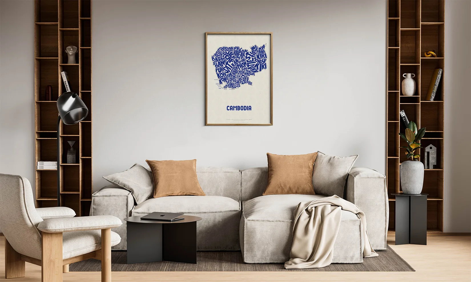 Cambodia Typographic Poster L size framed – Modern Graphic Design