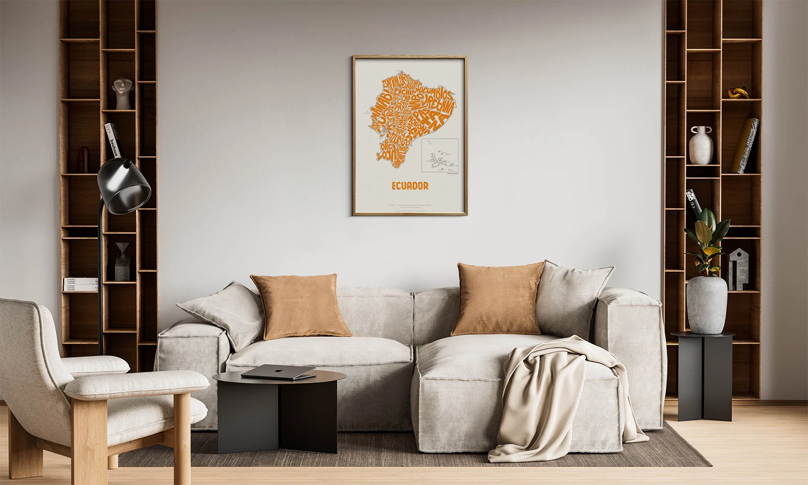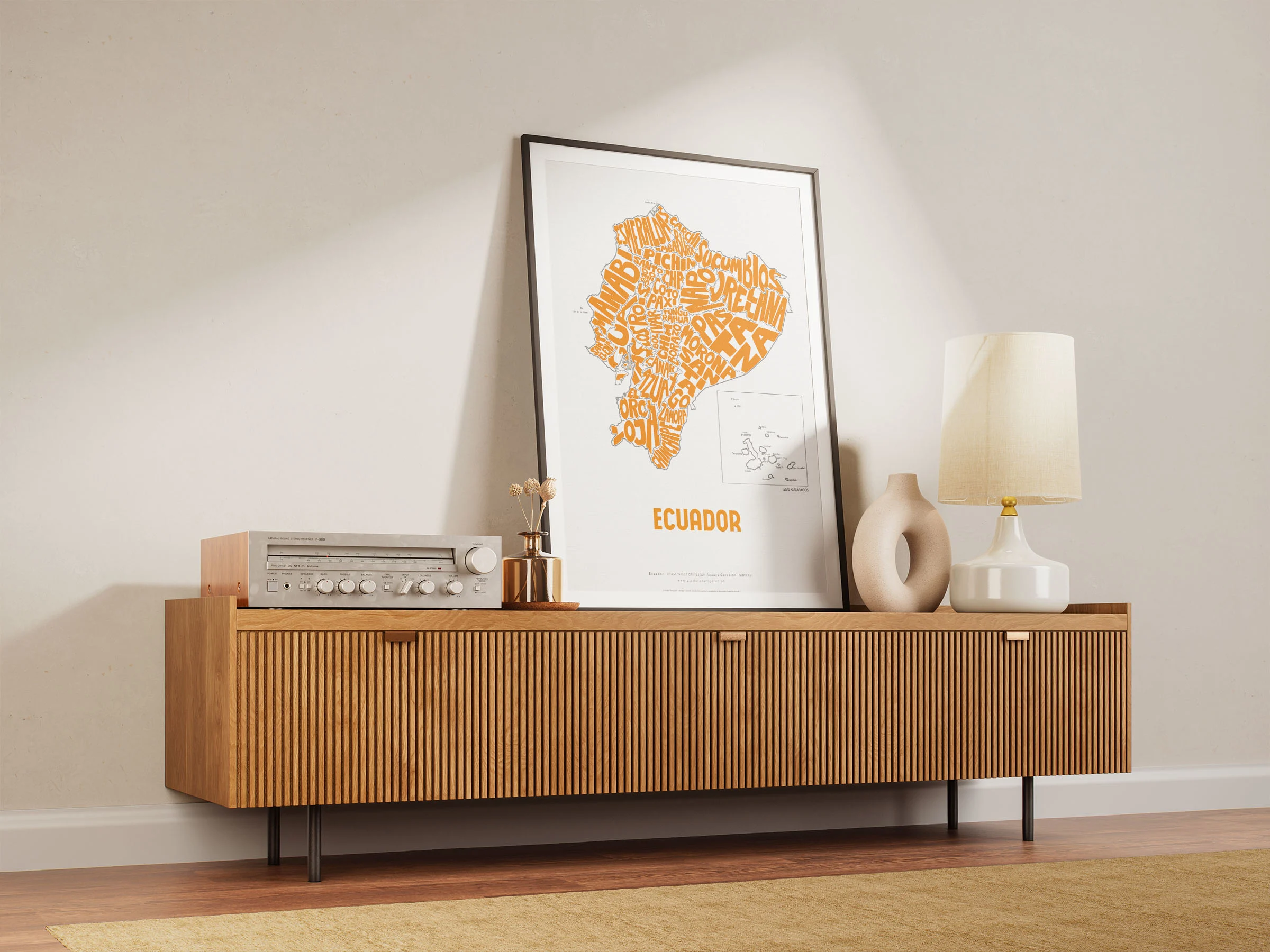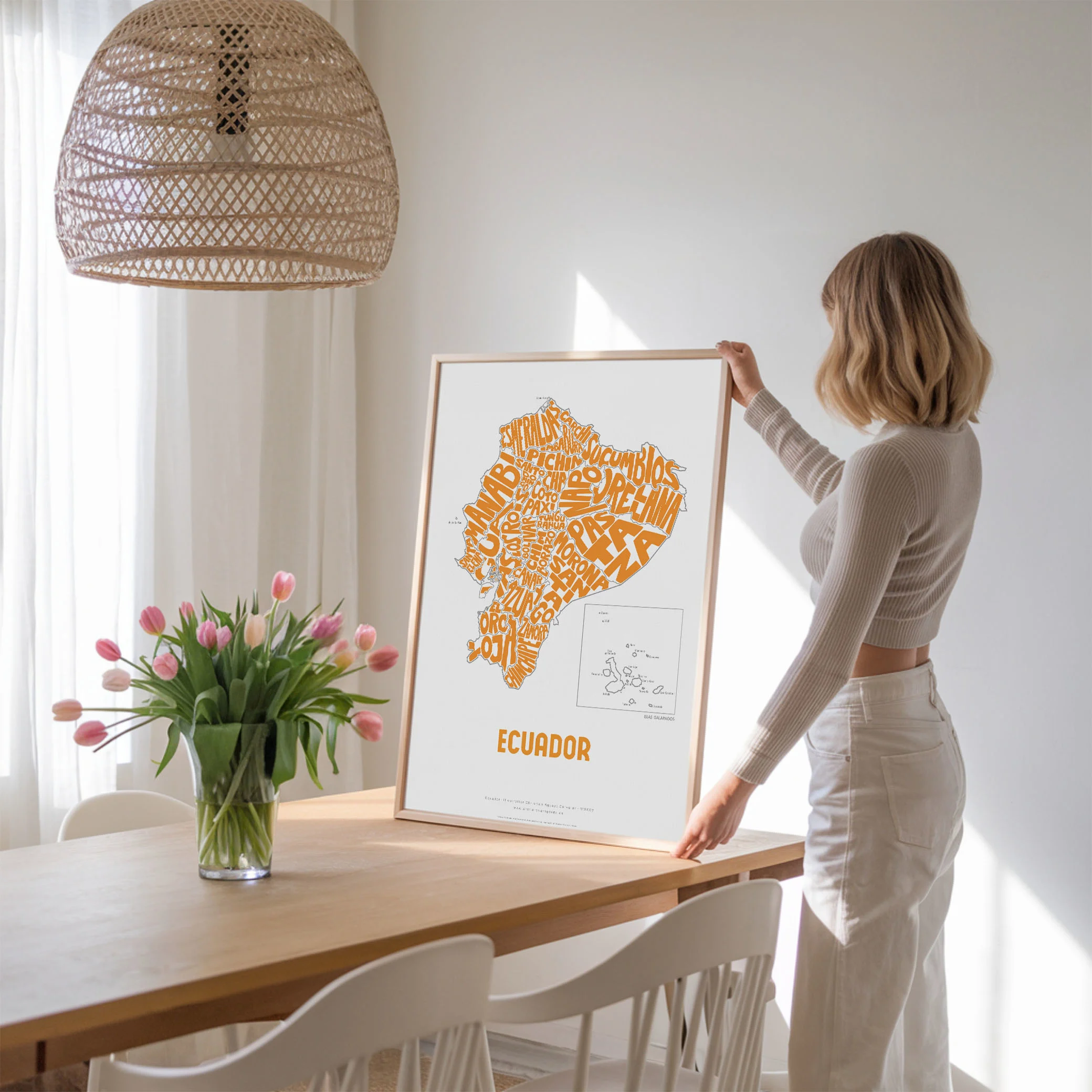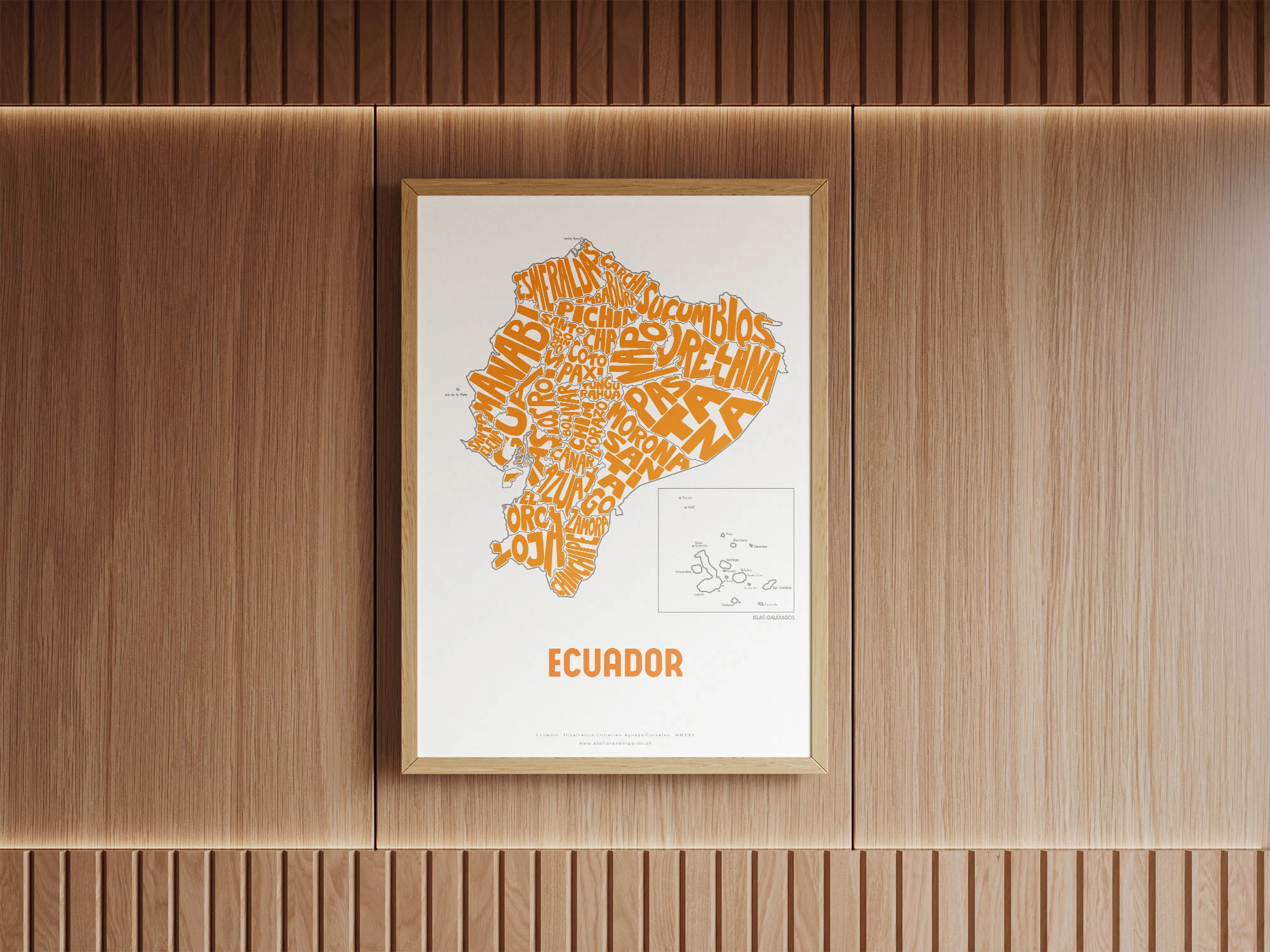 Typographic Illustration of Ecuador (Green on White). Hand-drawn and printed on high-quality paper