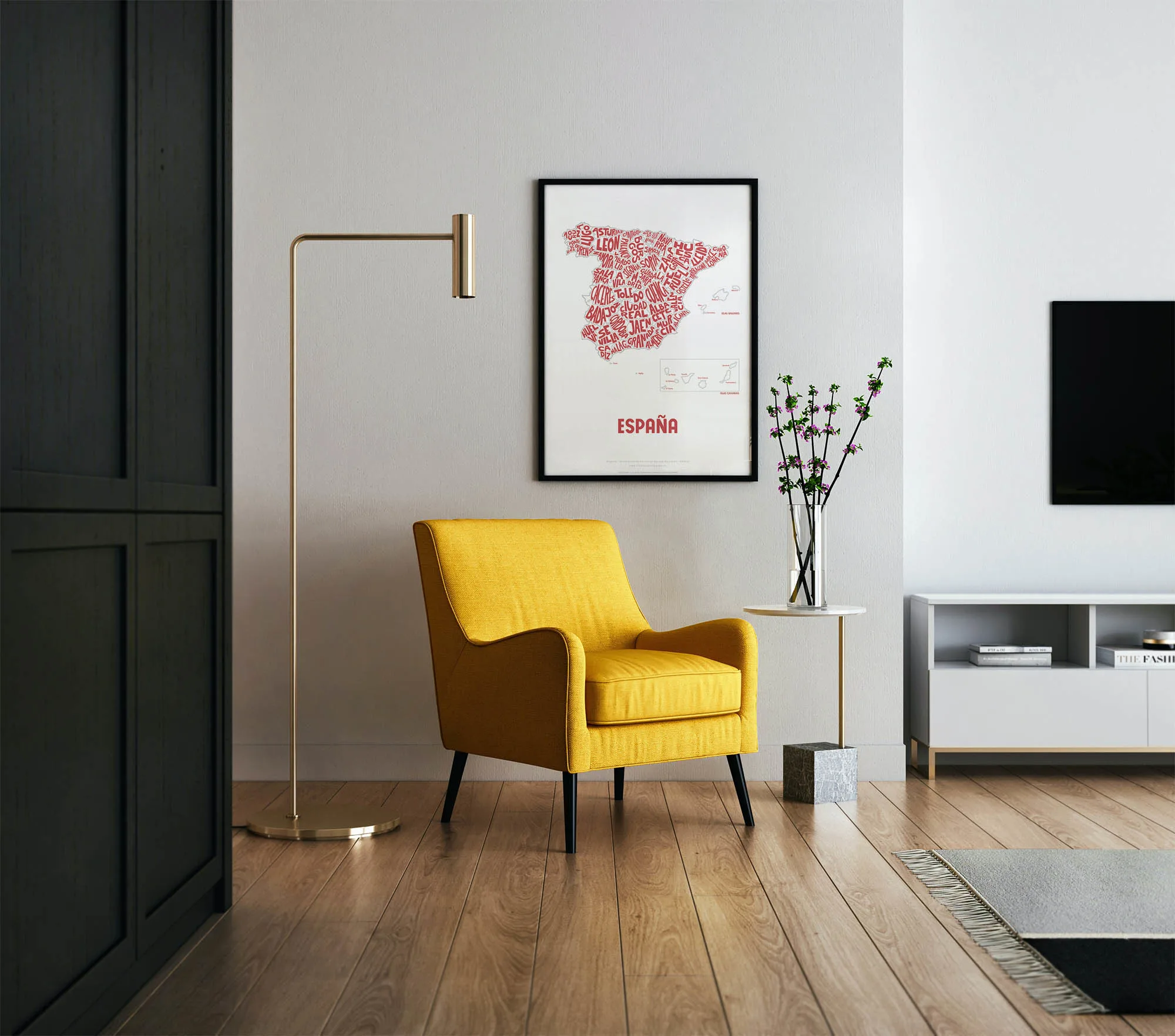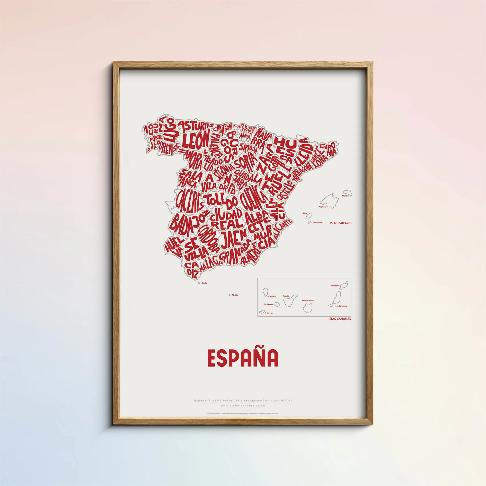 Typographic Illustration of Spain. Hand-drawn and printed on high-quality paper.