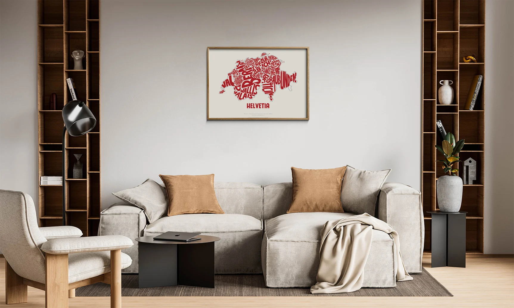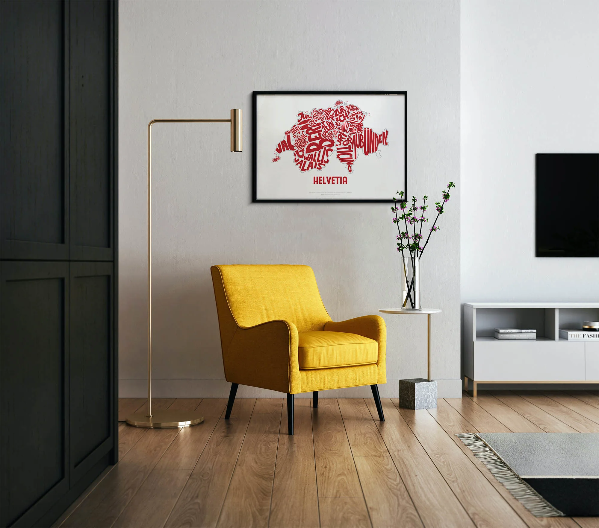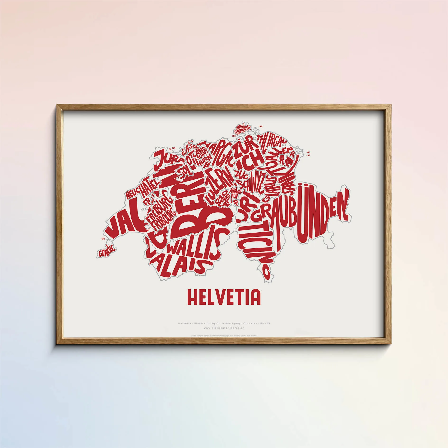 Helvetia Typographic Poster L size framed – Modern Swiss Graphic Design