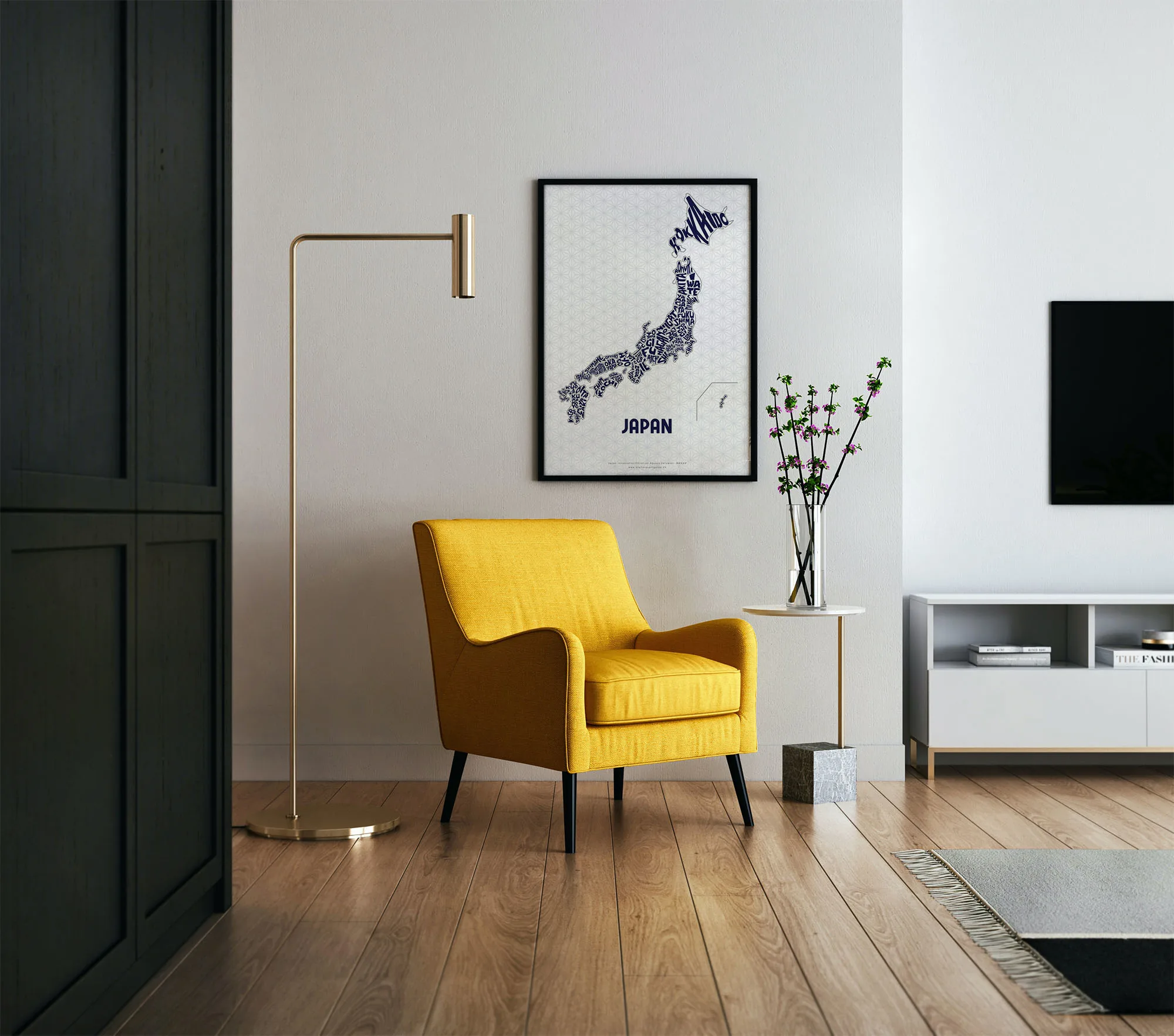 Japan Typographic Poster L size framed, white version – Modern Graphic Design