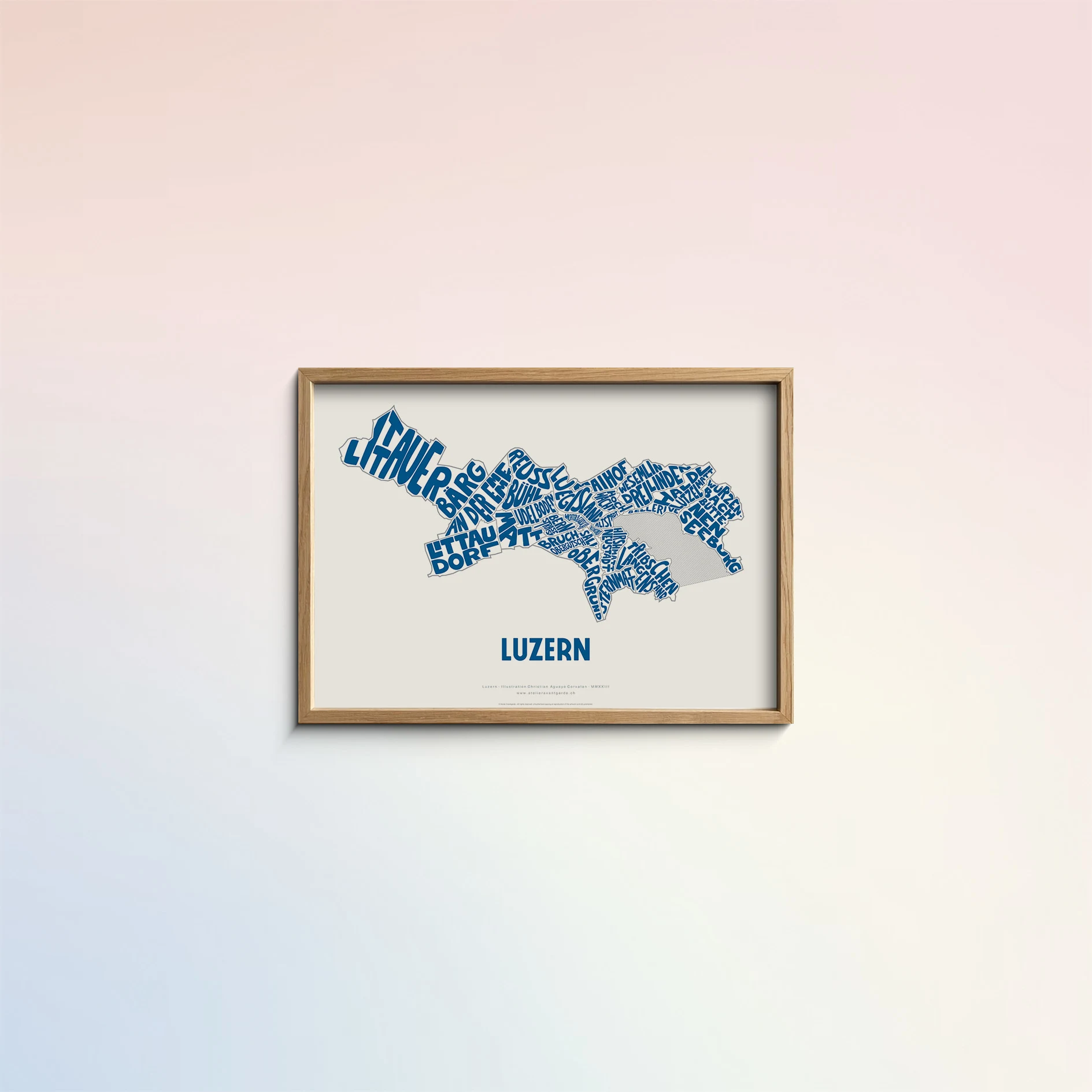 Luzern Typographic Poster M size framed – Modern Swiss Graphic Design