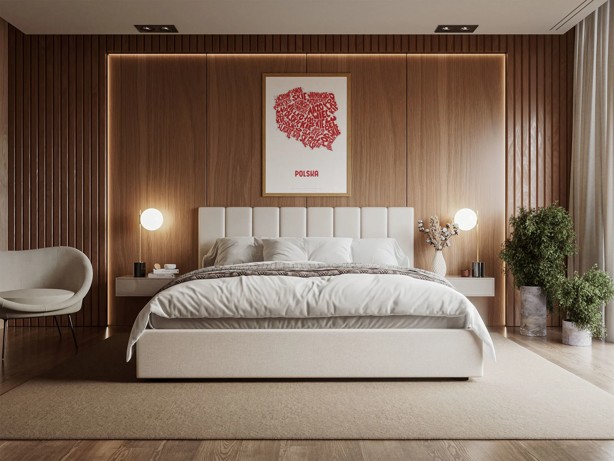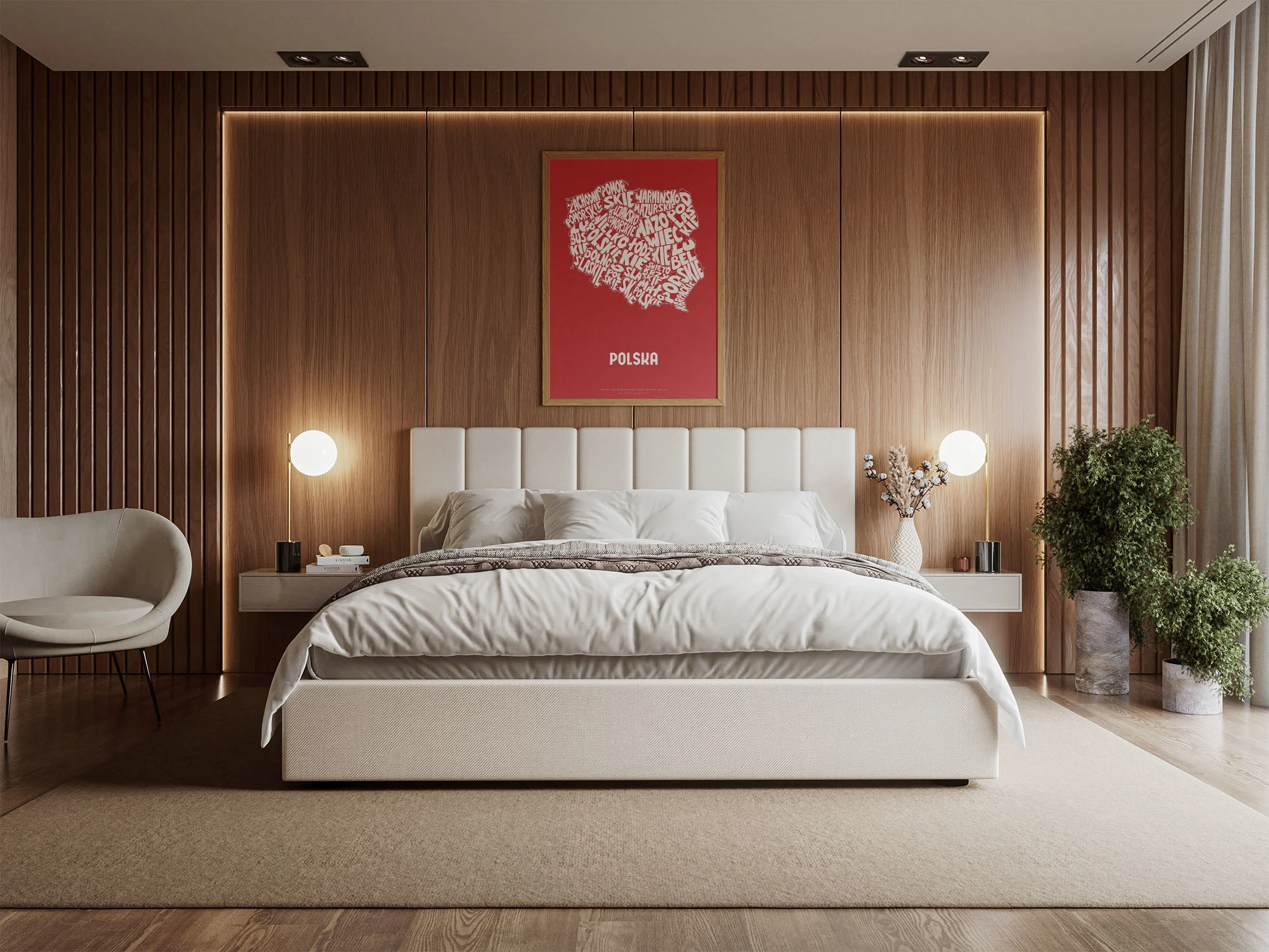 Typographic Illustration of Poland (white on red). Hand-drawn and printed on high-quality paper