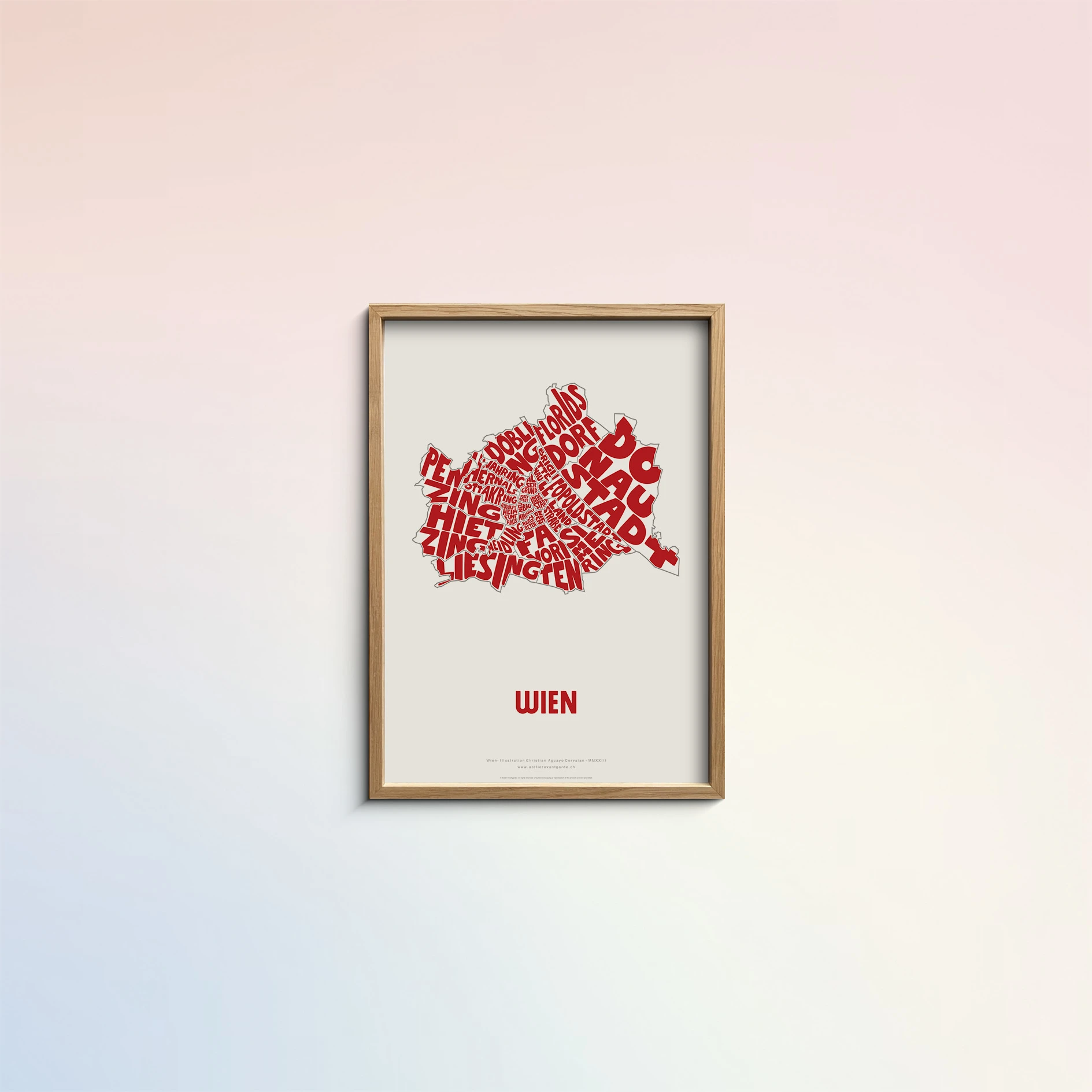 Wien Typographic Poster L size framed – Modern Graphic Design WIE-T-MKP 2