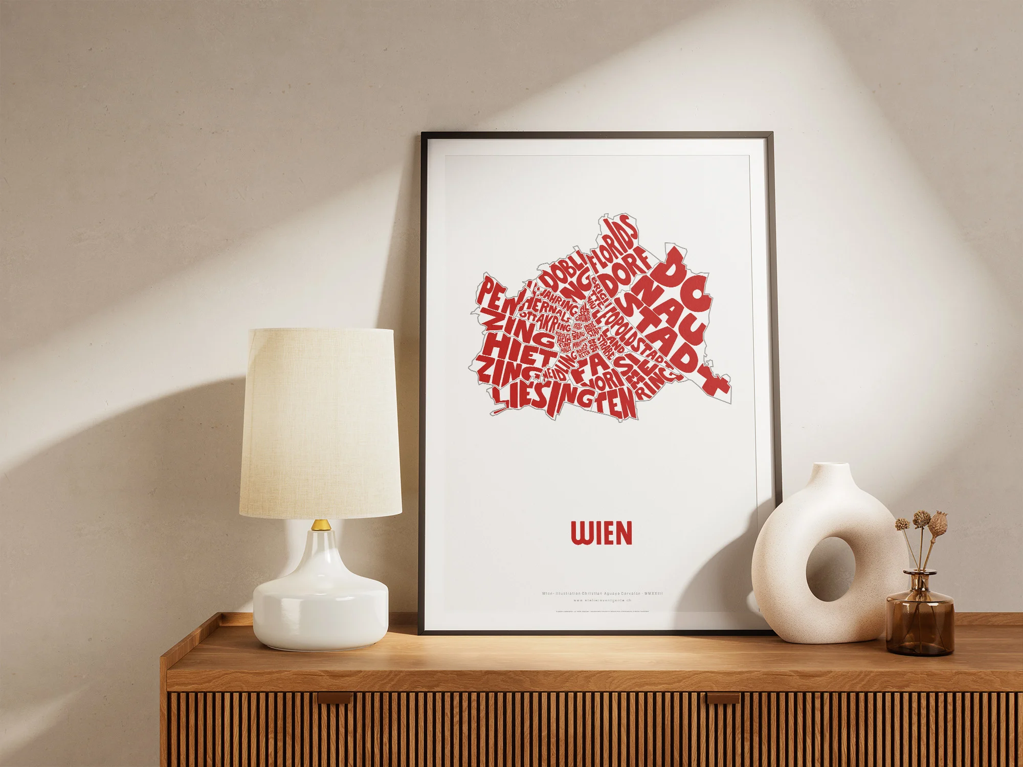Wien Typographic Poster M size framed – Modern Graphic Design